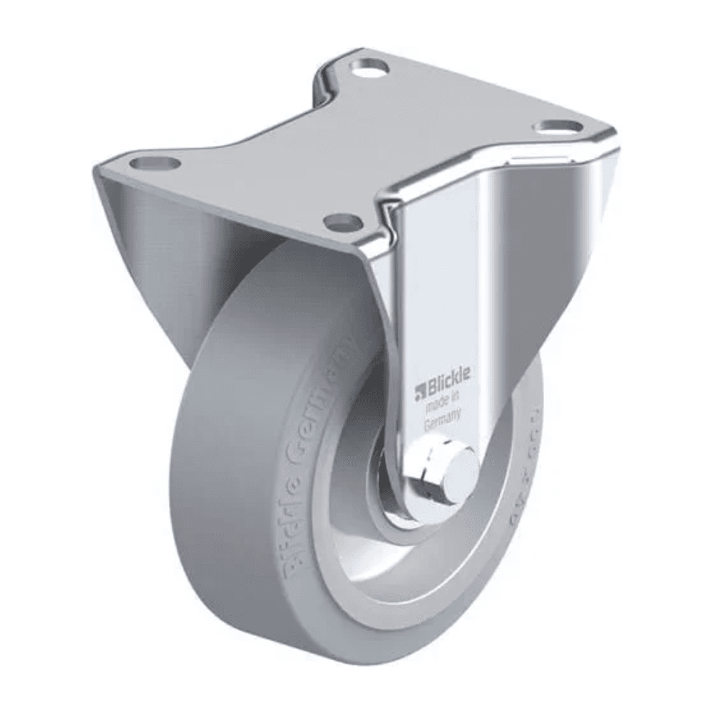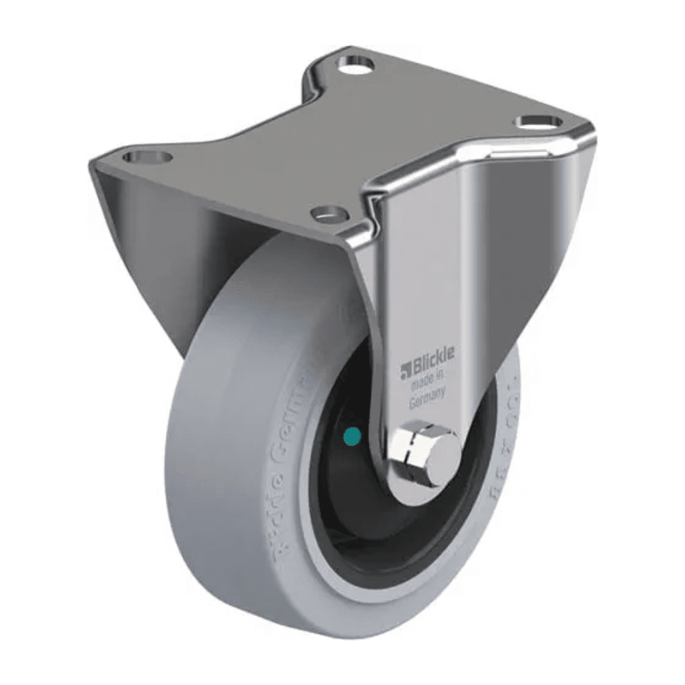 Rueda 4" Fija Inoxidable Caucho Elastico 100 X 32MM 200KG Rodamiento Bola A.Hilo. BLICKLE