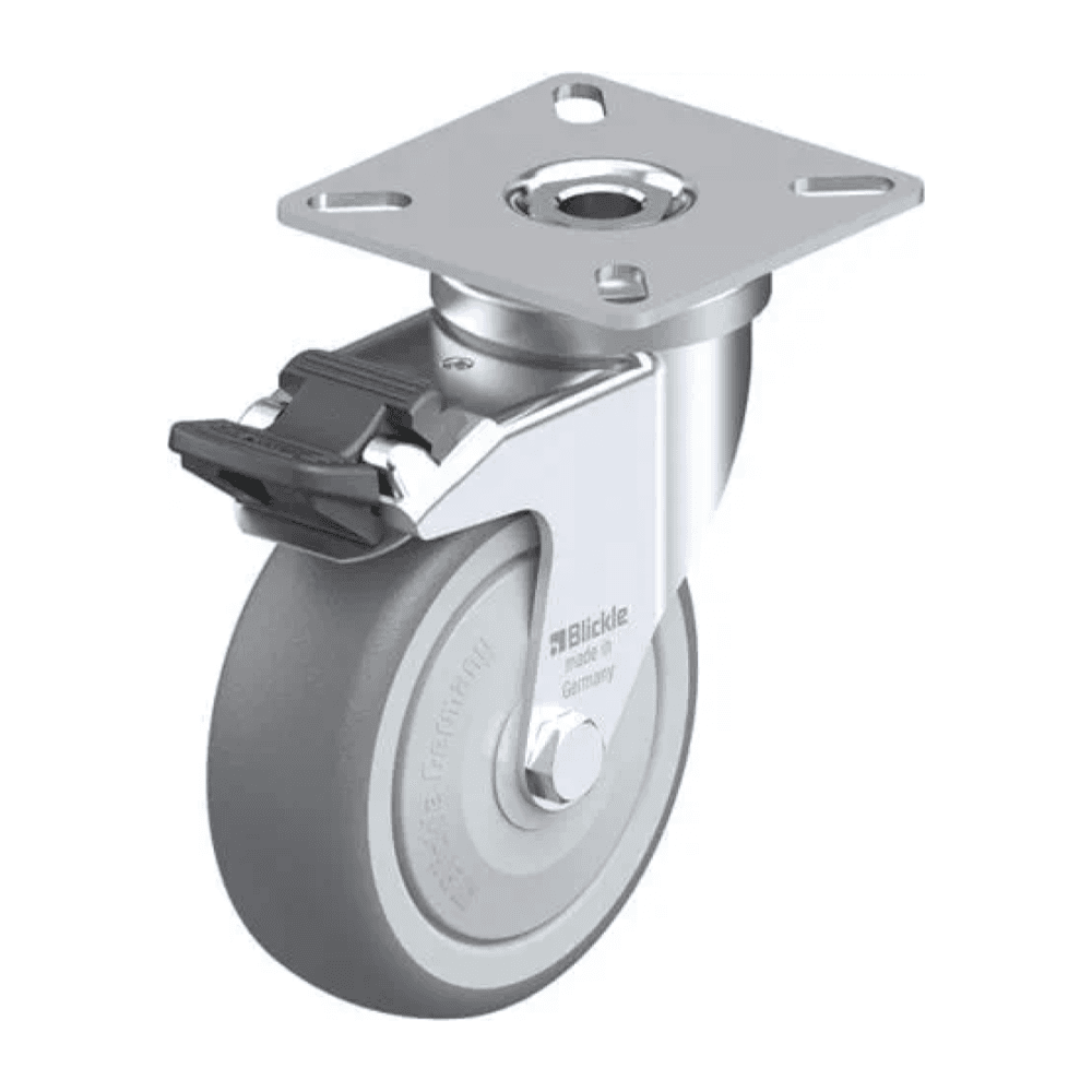 Rueda 3" Fija Inoxidable Poliuretano Termoplástico 80 X 32MM 150KG Rodamiento Bola A.Hilo. BLICKLE