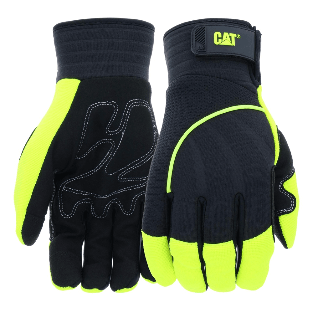 Guante para Mecánico Spandex/Cuero Negro con Verde HI-VIS Large. CAT GLOVES & SAFETY