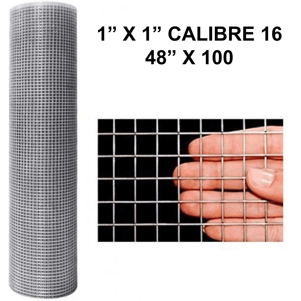 Malla Cuadrada Galvanizada Calibre 16 de 1" X 1" X 48" RL 100'. GENERICO