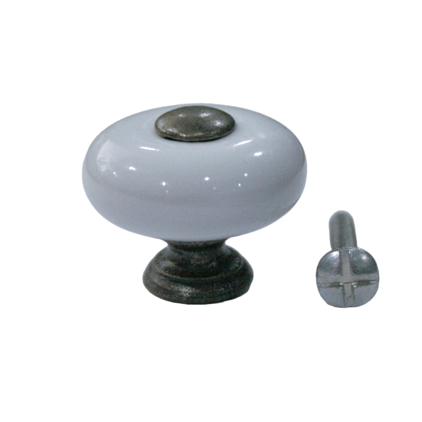 Tirador Tipo Botón de Porcelana Blanco. GENERICO