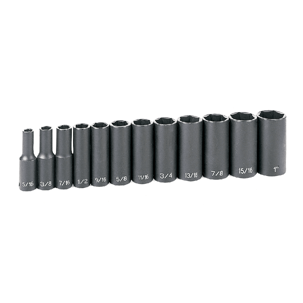 Socket Impacto STD SL P-3/8 5/16 > 1 6PT con Juego de 12 Piezas. GREY PNEUMATIC CORP.