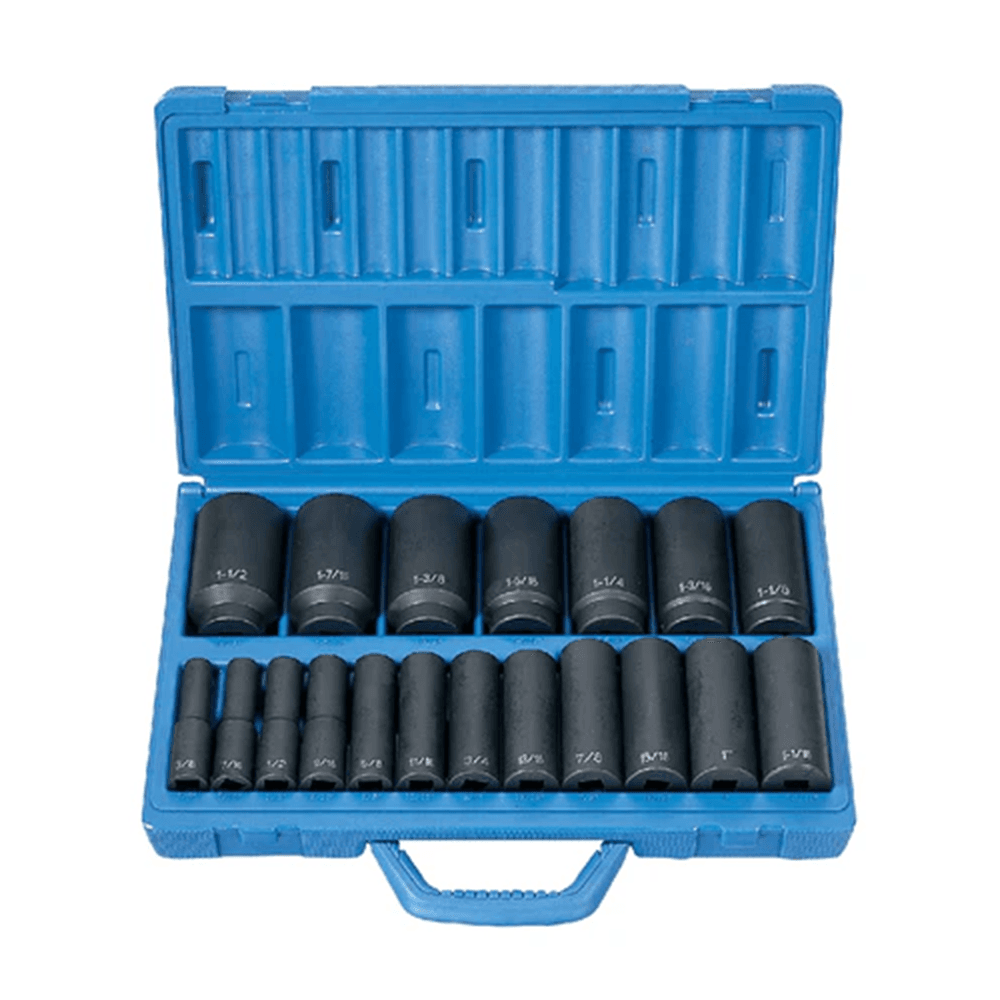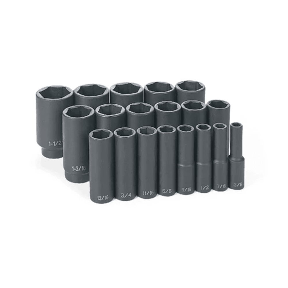 Socket Impacto STD SL P-1/2 3/8 > 1-1/2 6PT con Juego de 19 Piezas. GREY PNEUMATIC CORP.