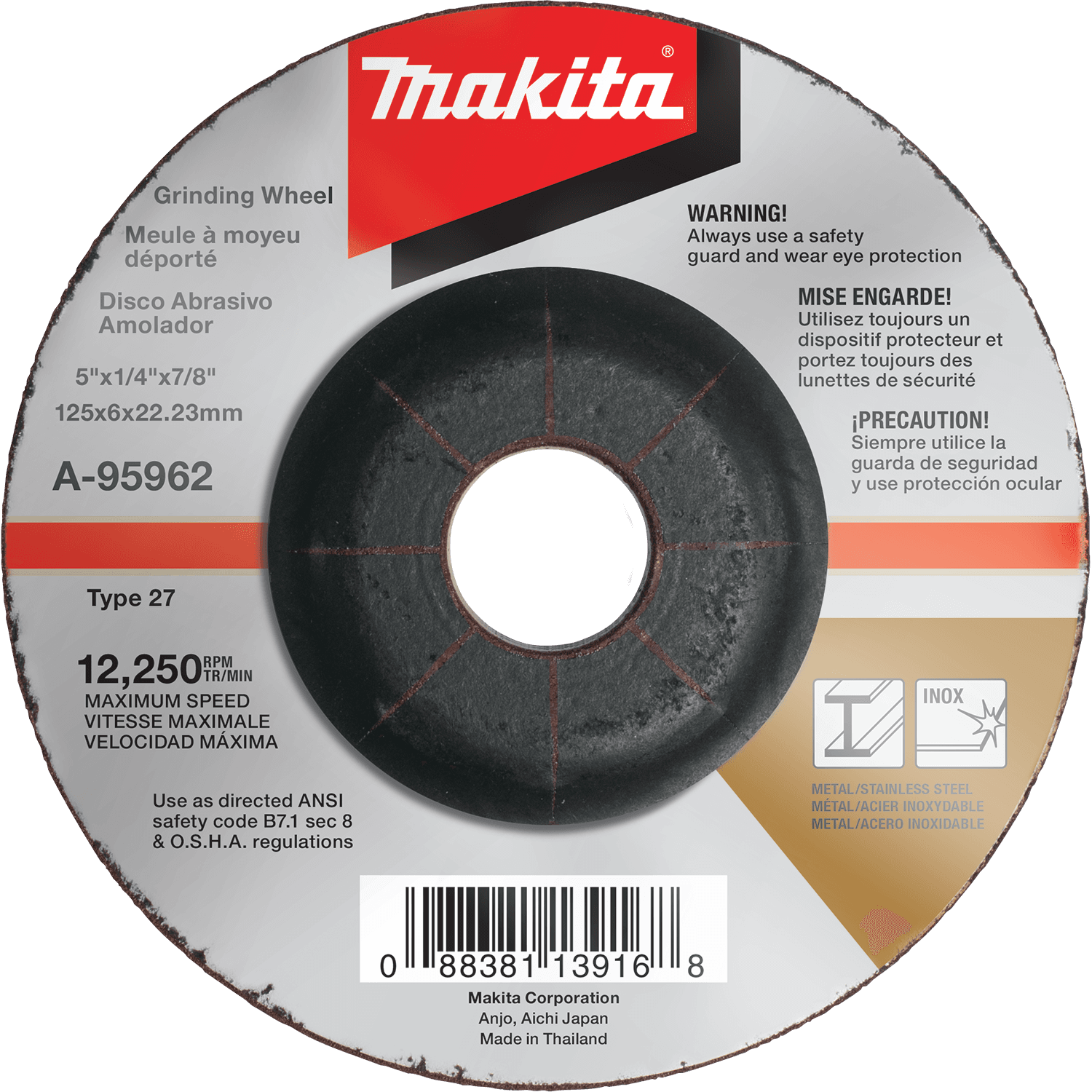 Lijadora Pulidora 7" Velocidad Variable de 0 a 3,000 Revoluciones por Minuto, Eje 5/8-11, 10 Amperios 120V. MAKITA