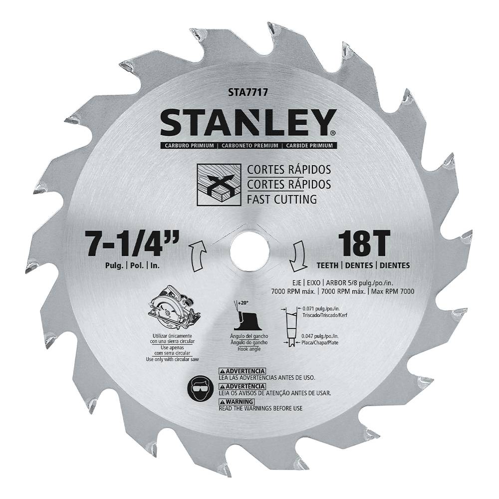 Hoja Sierra Circular de Carburo para Madera 7-1/4 X 18 Dientes X 5/8 de Eje. STANLEY