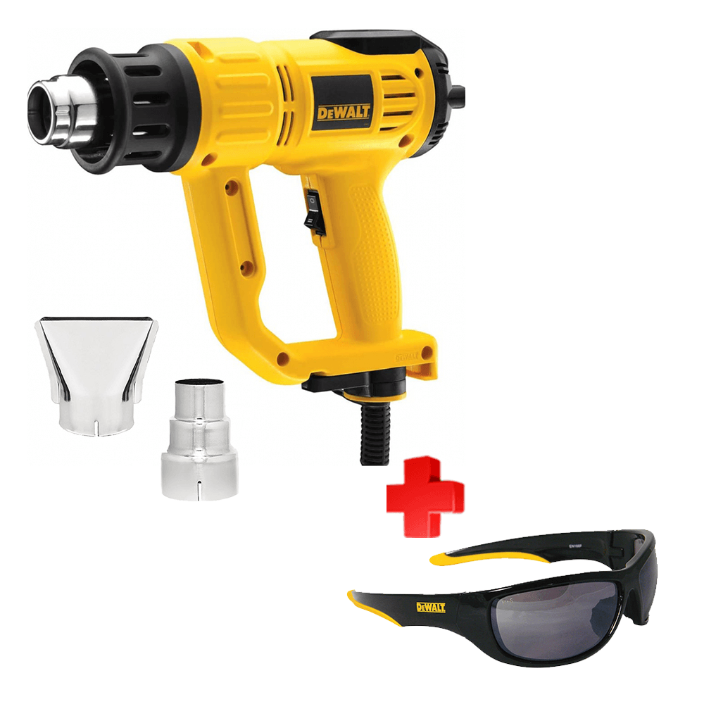 COMBO - DEWALT - Pistola de Calor de 50 a 600 Grados Celsius, Temperatura Variable con Visor LCD, 2 Boquillas, 2,000W 120V más Anteojo Seguridad