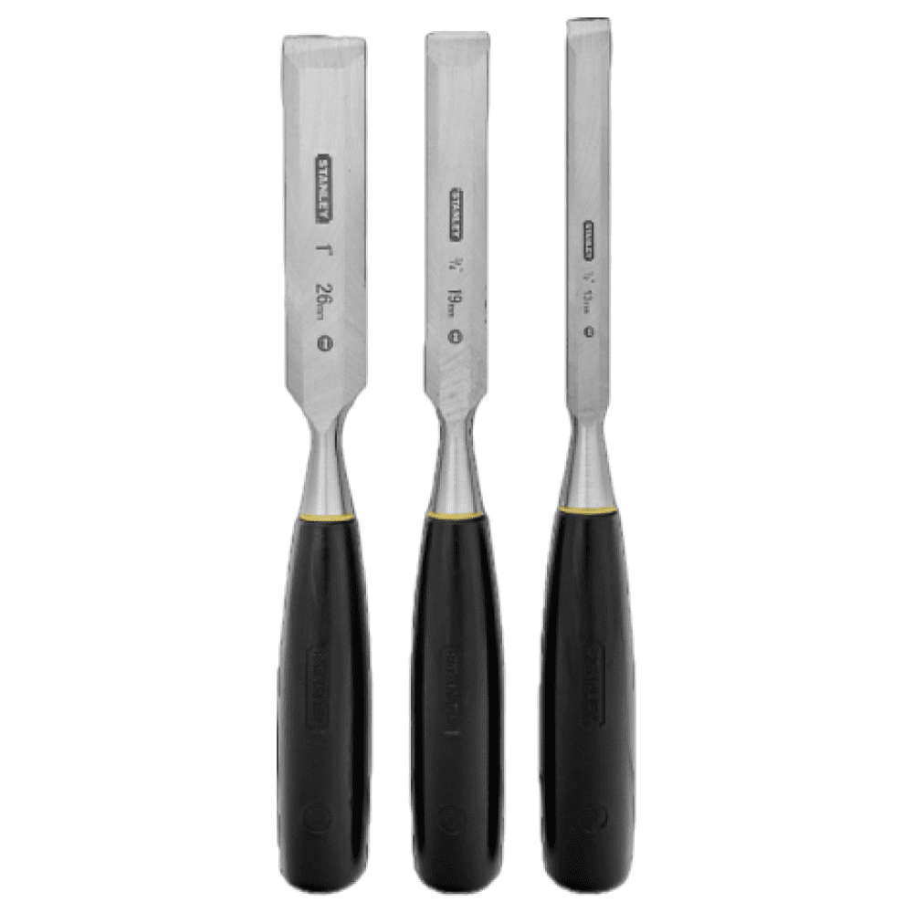 Formón de 1/2, 3/4, 1" con Mango Plástico Color Negro Stanley con Juego de 3 Piezas. STANLEY