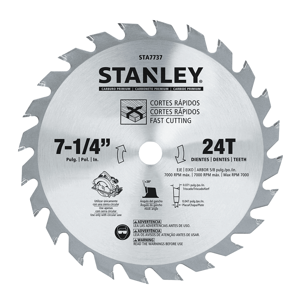 Hoja Sierra Circular de Carburo Para Madera 7-1/4 X 24 Dientes X 5/8E. STANLEY
