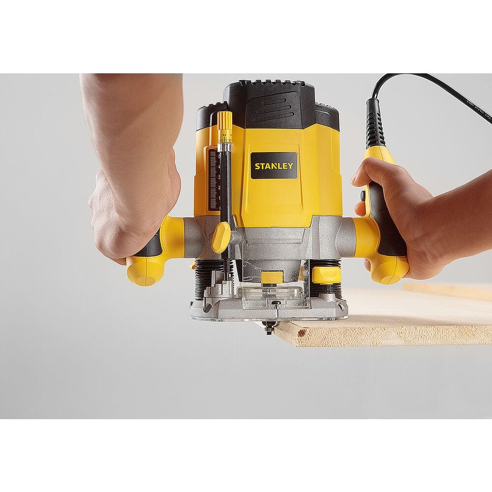 Router 1-1/3 HP, Espiga 1/4 y 8MM, con 3 Ajustes de Profundidad, Velocidad Variable de 8,000 a 2,700 Revoluciones por Minuto, Incluye 6 Cuchillas, 1,200W 120V. STANLEY