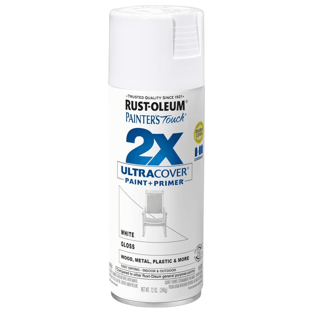 Pintura Spray de 12 Onzas para Plástico Color Blanco Brillante 2X. RUST-OLEUM