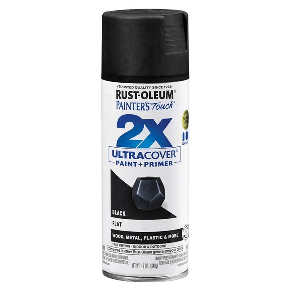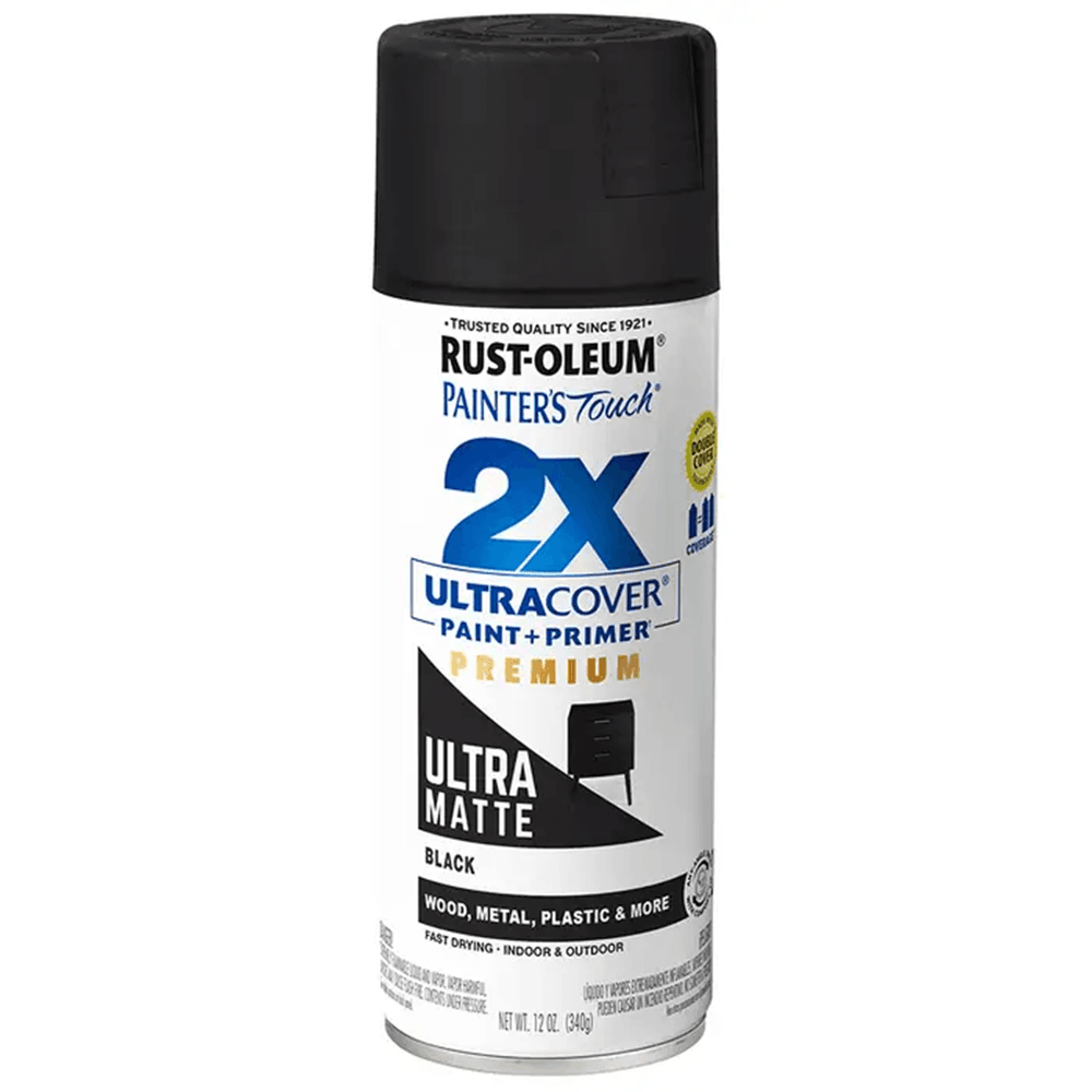 Pintura Spray de 12 Onzas para Plástico Color Negro Ultra Mate 2X. RUST-OLEUM