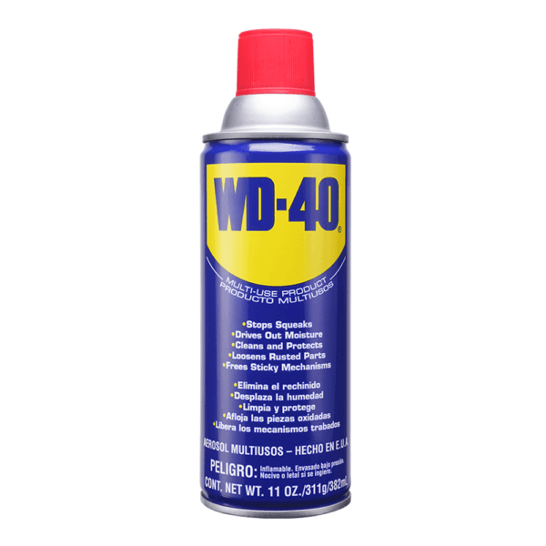 WD-40 Aceite Penetrante Multiusos ayuda a prevenir el óxido y la corrosión en superficies de metal, afloja piezas atascadas, desplaza la humedad y lubrica. La válvula de 360° permite aplicar el producto en cualquier posición. Lubrica piezas móviles como bisagras, ruedas, rodillos, cadenas y engranajes. Protege contra el óxido y la corrosión en elementos como herramientas y equipos deportivos. Penetra para liberar piezas corroídas o atascadas como tuercas, pernos, válvulas y cerraduras.
