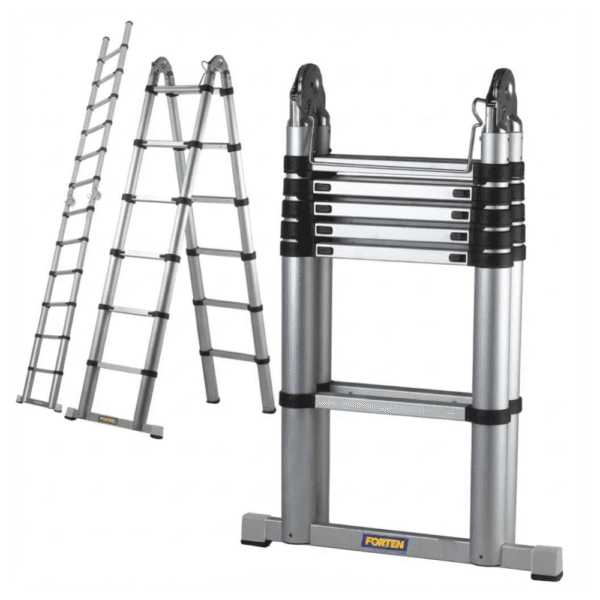 Escalera Tijera Aluminio Telescópica 12.6′ (3.85 M) Tipo I 330 Lbs. FORTEN