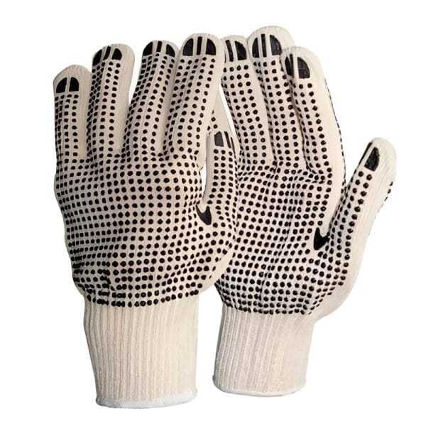 Este guante de algodón tejido con puntos de PVC en palma y dorso está diseñado para brindar mayor tracción, comodidad y versatilidad en tareas de uso general. Los puntos antideslizantes en ambas caras mejoran el agarre desde cualquier ángulo, mientras que el tejido transpirable mantiene las manos frescas durante usos prolongados. Su diseño puño elástico facilita la colocación y el ajuste seguro, convirtiéndolo en una opción práctica y económica para entornos laborales dinámicos.