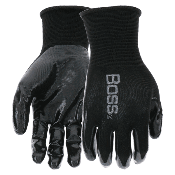 Guante Nylon con Palma Nitrilo Color Negro Talla Medium. BOSS MFG