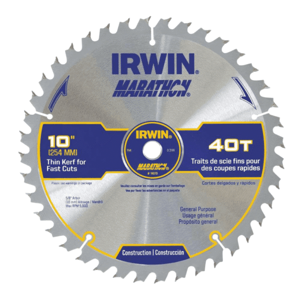 Hoja Sierra Circular Carburo Madera de 10″ X 40D X 5/8E. IRWIN INDUSTRIAL TOOLS