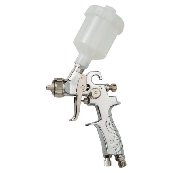 La Prowin KR-357M10 es una mini pistola para pintar de alimentación por gravedad que ofrece un rendimiento de alta eficiencia para aplicar una capa de pintura superior. Es ideal para todo tipo de acabados automotrices, incluyendo barnices transparentes.