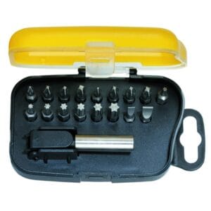 Este juego de puntas de atornillador mixto de 20 piezas incluye insertos fabricados con acero de herramienta S2 de alta calidad, lo que garantiza una larga vida útil y una durabilidad excepcional. El estuche exclusivo ofrece almacenamiento individual para cada punta, además de espacio para la guía de atornillado. Cuenta con un imán en la parte inferior que permite fijarlo a la mayoría de cajas metálicas de herramientas, cajas de almacenamiento en obra, cajas de camión u otras superficies metálicas, facilitando el acceso rápido y evitando que el juego se pierda entre otras herramientas o accesorios.