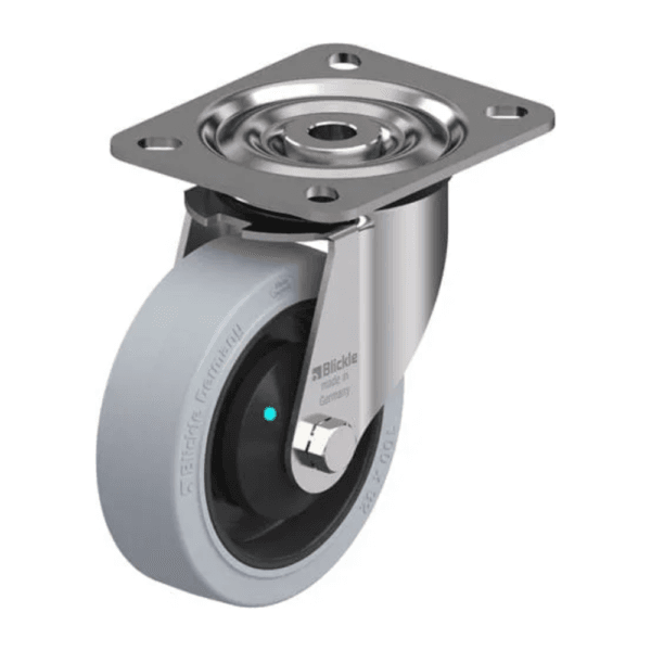 Rueda 4″ Giratoria Inoxidable Caucho Elastico 100 X 32MM 200KG Rodamiento Bola A.Hilo. BLICKLE
