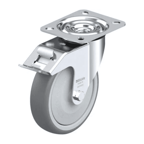 Rueda de 5″ Giratoria Inoxidable Con Freno Poliamida 125 X 40MM 250KG. BLICKLE