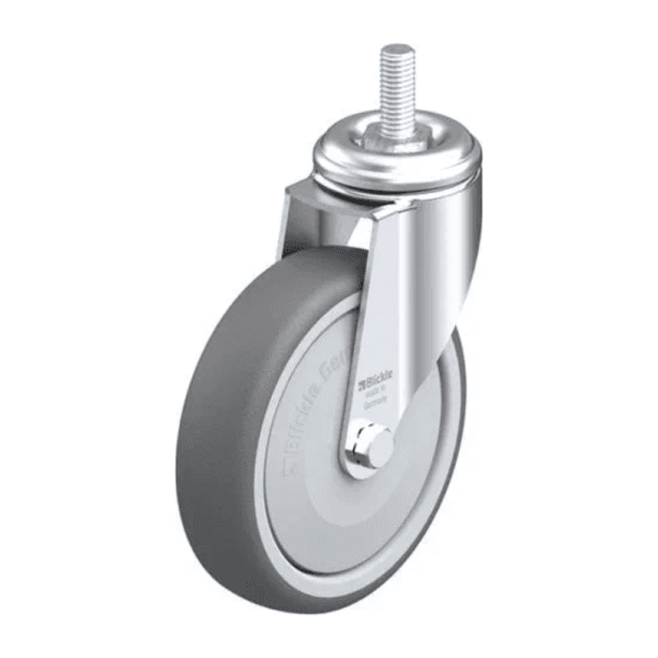 Rueda 4″ Giratoria con Espiga Caucho Termoplástico 100 X 32 X 12MM 110KG Rodamiento Bola A.Hilo. BLICKLE