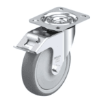 Rueda de 4″ Giratoria Inoxidable Con Freno Caucho Elástico 100 X 32MM 200KG con Rodamiento Bola A.Hilo. BLICKLE