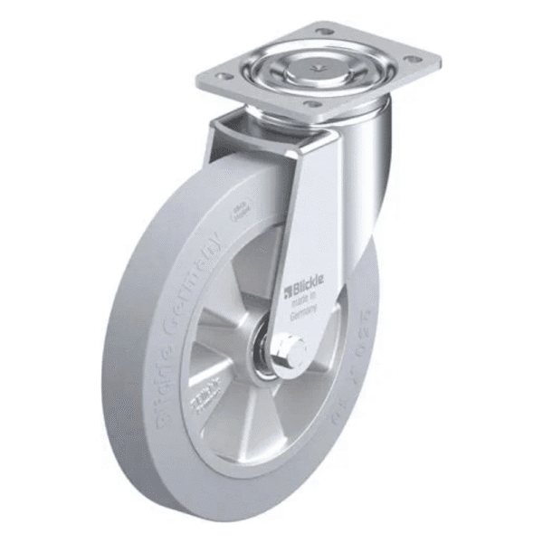 Rueda de 10″ Giratoria Caucho Núcleo Aluminio 250 X 50MM 650KG con Rodamiento Bola. BLICKLE