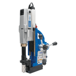 Taladro de base magnética con capacidad de perforación de hasta 2″ de diámetro y 2″ de profundidad, ideal para aplicaciones exigentes en metal. Equipado con un potente motor de 9 amperios y caja de engranajes de 2 velocidades (250 y 450 RPM) para mayor versatilidad. Su sistema de avance automático, luz piloto y expulsión positiva de viruta facilitan un trabajo preciso y eficiente. Incorpora botella de refrigerante, sistema de seguridad con detector de elevación y magneto de dos etapas para mayor estabilidad y rendimiento.