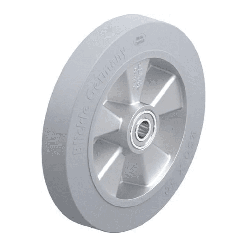 Rueda de 10" Fija Caucho Núcleo Aluminio 250 X 50MM 650KG con Rodamiento Bola. BLICKLE